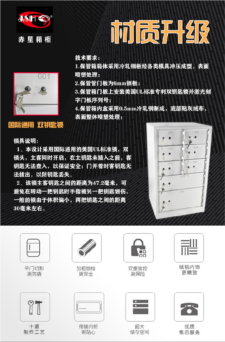 7。保管箱箱体采用2mm优质冷轧钢板经各类模具冲压成型,表面经除锈,
